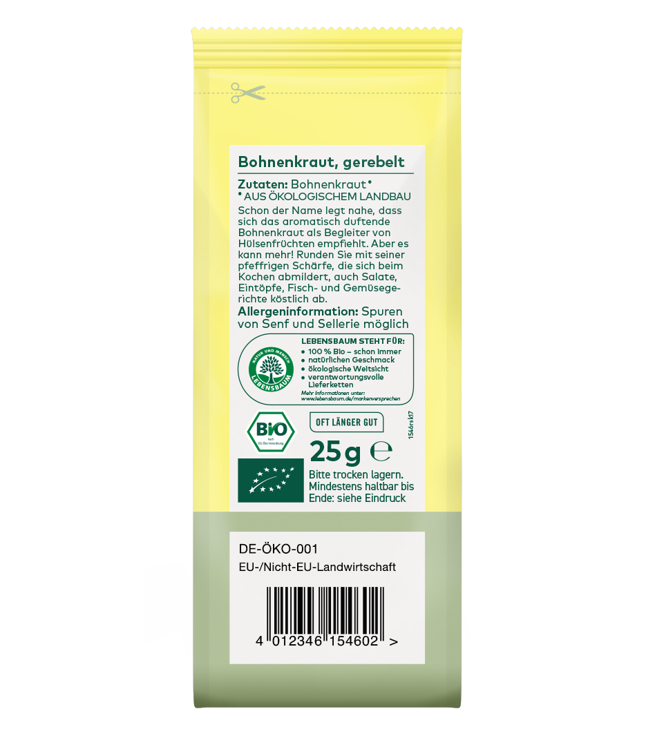 Schon der Name legt nahe, dass sich das aromatisch duftende Bohnenkraut als Begleiter von Hülsenfrüchten empfiehlt. Aber es kann mehr! Runden Sie mit seiner pfeffrigen Schärfe, die sich beim Kochen abmildert, auch Suppen, Fisch- und Fleischgerichte köstlich ab.