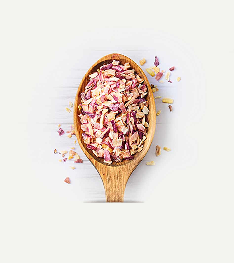 Mit unseren roten und weißen Zwiebeln verleihen Sie herzhaften Gerichten köstliche Röstaromen. Fein geschnitten, schonend getrocknet und mit einer fruchtigen Süße geben sie auch Dips oder Kräuterbutter – nicht nur optisch – den letzten Schliff.
