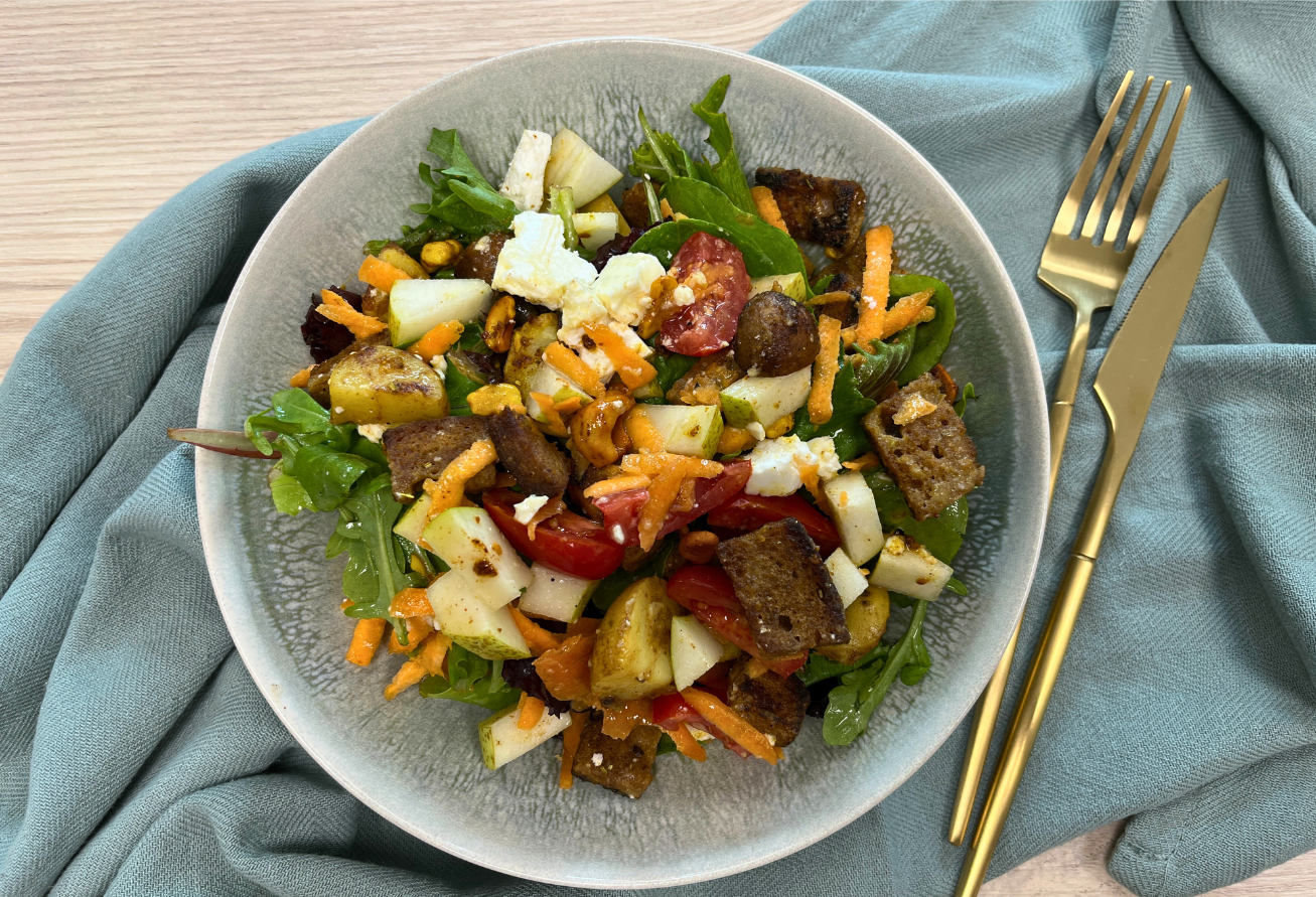 Beispiel mit würzigen Bananen-Pancakes, einem italienischen Schüttelsalat oder Gemüse-Muffins mit Kräuter-Blüten-Creme?