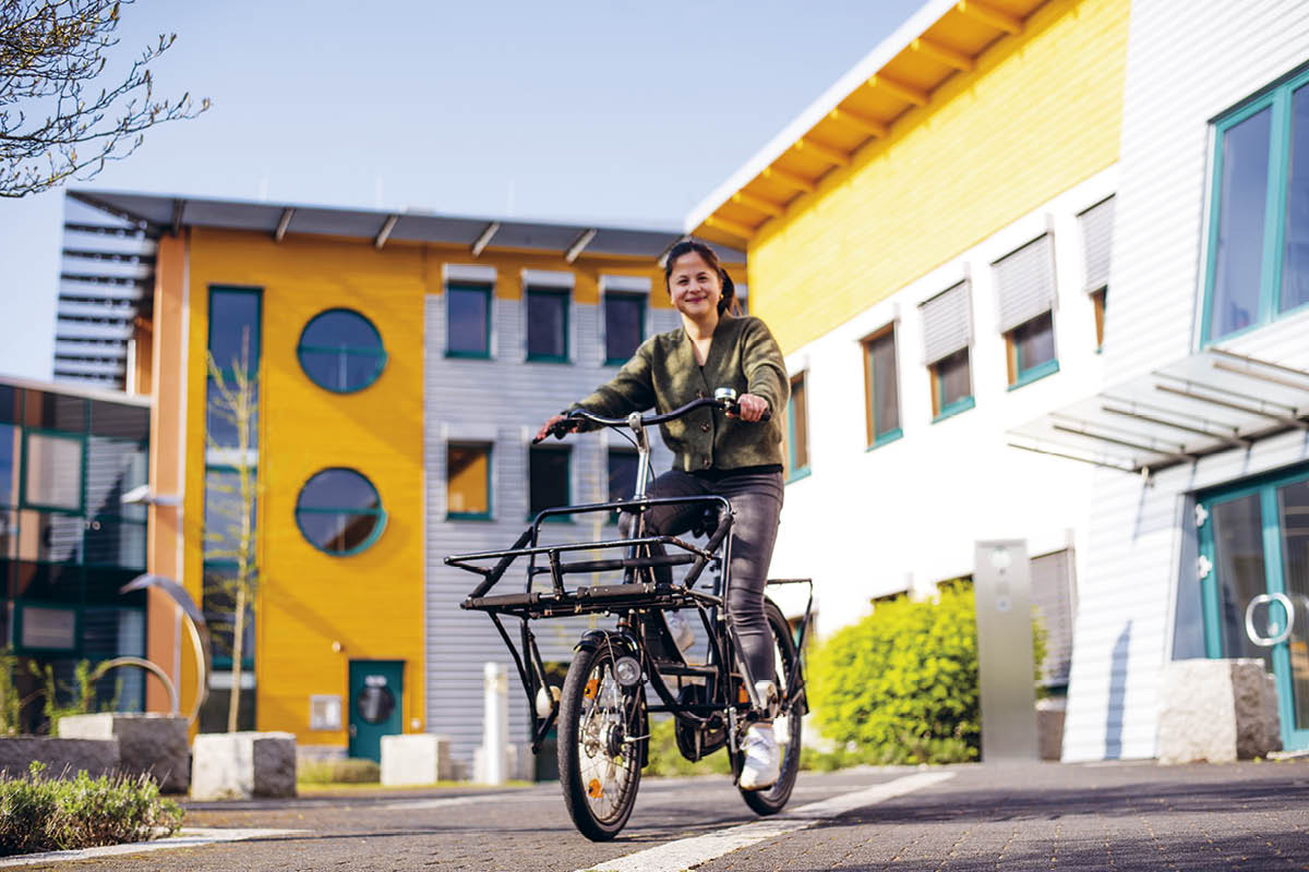 Das Netz der öffentlichen Verkehrsmittel ist an unseren ländlich gelegenen Standorten nicht so gut ausgebaut wie in Großstädten. Bei uns gibt es keine praxistauglichen Busverbindungen für den Weg zur Arbeit. Pendler:innen nutzen allerdings die günstige Bahnverbindung zwischen Bremen und Osnabrück, um einen Teil der Strecke zum Standort Diepholz zurückzulegen. Das Fahrrad wird von Mitarbeiter:innen sowohl in Gronau als auch in Diepholz häufig für den Arbeitsweg genutzt. Wegen gestiegener Nachfrage haben wir deswegen im vergangenem Jahr auch die Fahrradunterstände an unserem Standort in Diepholz erweitert. Für die Wege zwischen dem Logistikzentrum und der Produktion in Diepholz stehen unseren Mitarbeiter:innen zudem Lastenräder zur Verfügung, mit denen Päckchen und Pakete transportiert werden können. Im letzten Jahr wurde es Zeit für zwei neue Werks-Lastenräder. Für die Überführung von der Fahrradmanufaktur zu uns nach Hause haben sich unsere Mitarbeiter:innen etwas Besonderes ausgedacht: Per Muskelkraft wurden die beiden Räder von einem sechsköpfigen Team von Bremen nach Diepholz geradelt – eine Strecke von insgesamt 80 Kilometern. Startpunkt war die Fahrradmanufaktur Velo Lab.