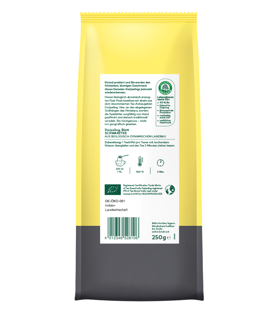 Als unverwechselbar blumig und vollmundig lässt sich unser Darjeeling beschreiben. Am Rande des Himalaya wird seit mehr als einem Vierteljahrhundert Tee bio-dynamisch kultiviert. Die beste Grundlage für diesen hervorragenden Schwarztee.