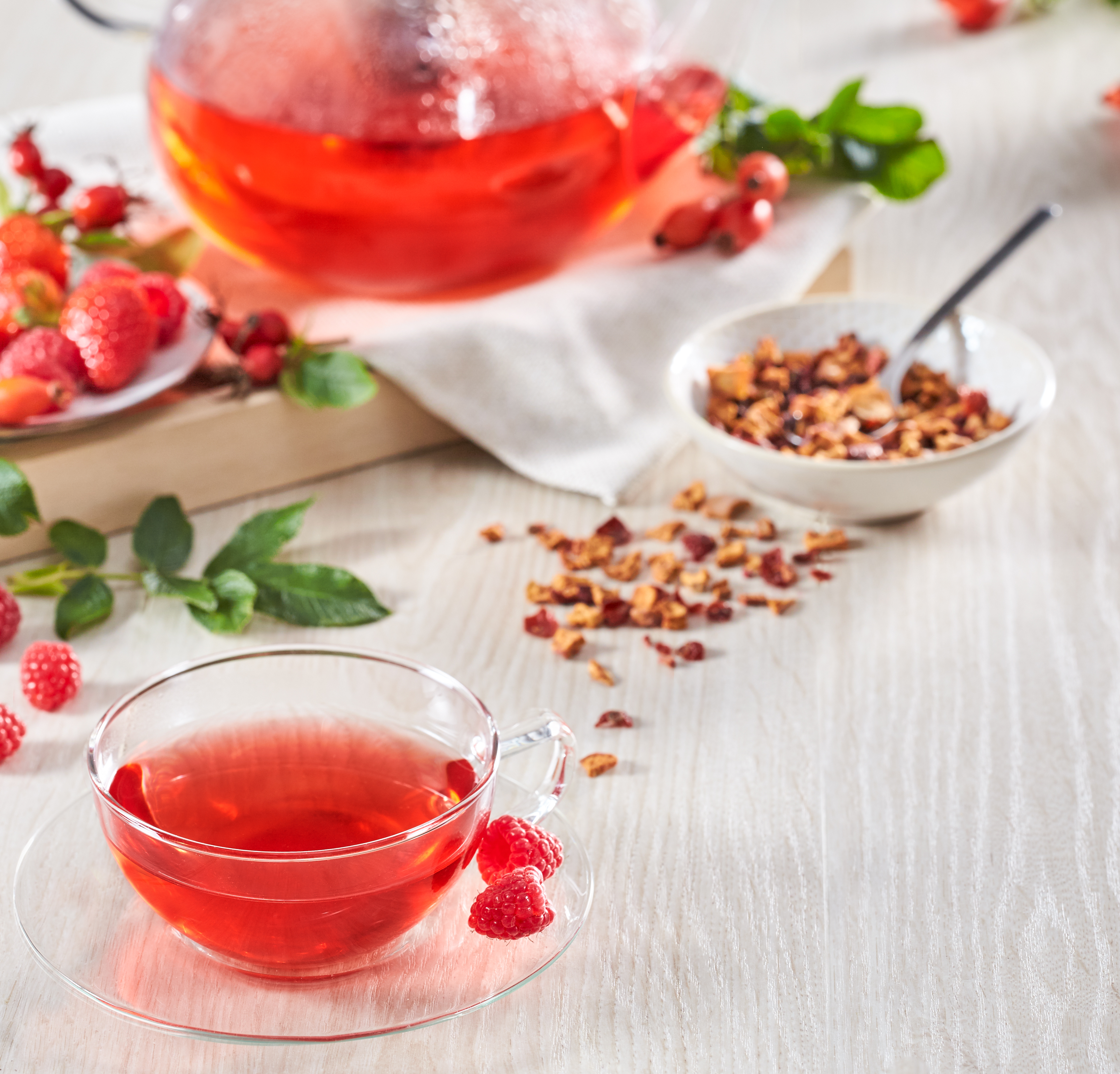 Orange und Granatapfel geben in dieser fruchtigen Mischung den Ton an. Unterstützt von Apfel, Hagebutte, Hibiskus und natursüßem Brombeerblatt entfaltet sich ein intensives Aroma - allein aus der Kraft der natürlichen Zutaten. Gönnen Sie sich Ihre tägliche Tasse Fruchtgenuss.