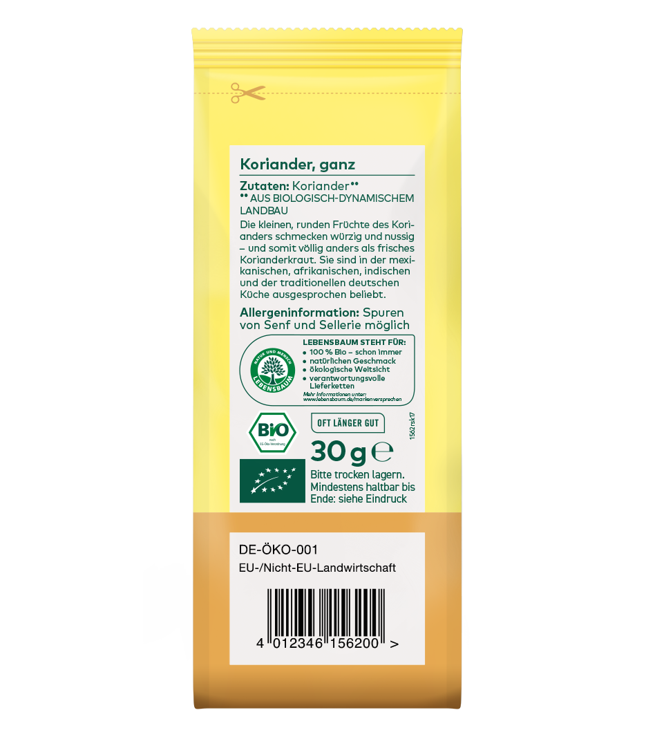 Die kleinen, runden Früchte des Korianders schmecken würzig und nussig - und somit völlig anders als frisches Korianderkraut. Sie sind in der mexikanischen, afrikanischen, indischen und der traditionellen deutschen Küche ausgesprochen beliebt.