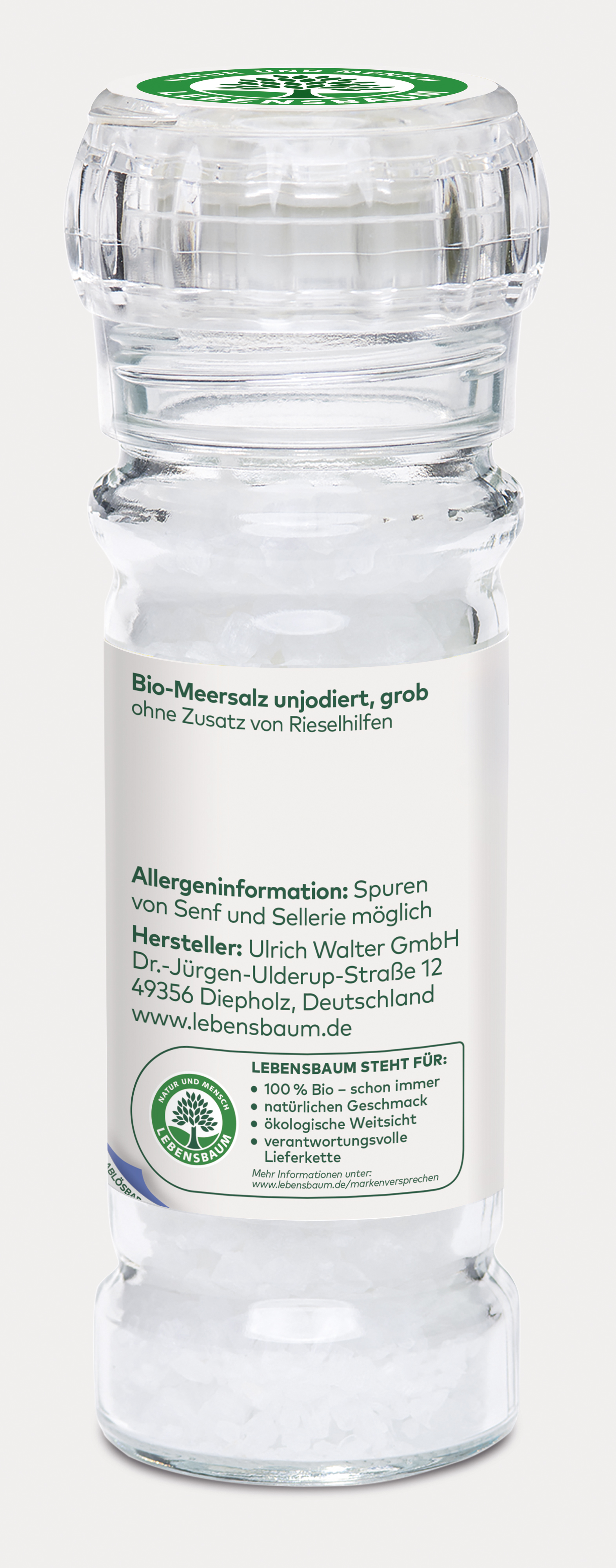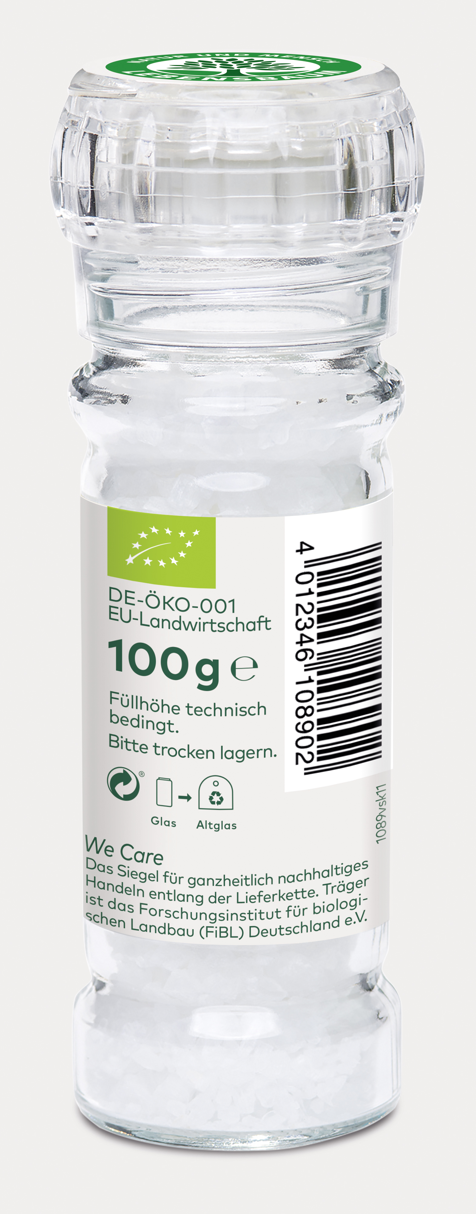 Unser Meersalz kommt aus mediterranen Salzgärten direkt in die Mühle. Durch unser Keramikmahlwerk gelangen die feinen Salzkristalle dann am Küchentisch frisch gemahlen auf Gurkenscheiben und Co. Besonders gut macht sich das weiße Gold in Begleitung von schwarzem Pfeffer.