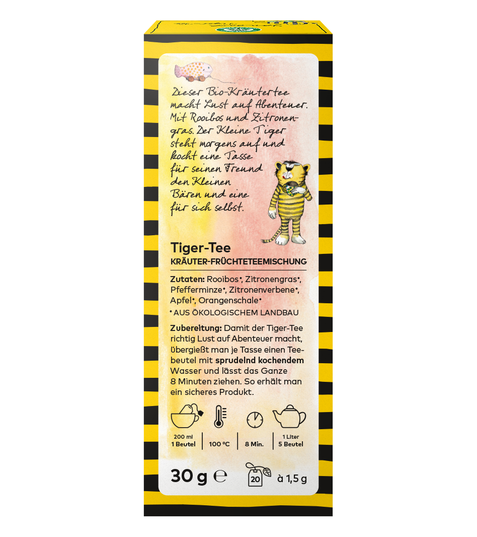 Dieser Bio-Kräuter-Früchtetee macht ruckzuck putzmunter. 20 x 1,5 g