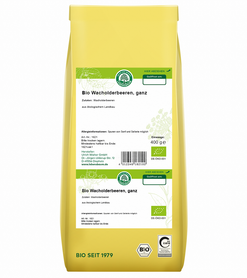 Wacholderbeeren schmecken würzig-süß, mit einer klaren, leicht herben Note. Drei Jahre dauert es, bis die Beeren an ihrem stachligen Strauch gereift sind. Verwenden Sie sie ganz oder zerstoßen Sie sie für herzhafte Soßen, Fleisch- und Fischgerichte.