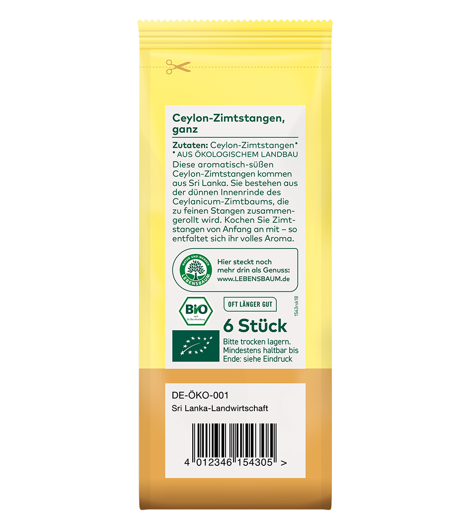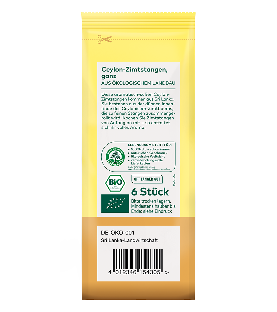 Diese aromatisch-süßen Ceylon-Zimtstangen kommen aus Sri Lanka. Sie bestehen aus der dünnen Innenrinde des Ceylanicum-Zimtbaums, die zu feinen Stangen zusammengerollt wird. Kochen Sie Zimtstangen von Anfang an mit – so entfaltet sich ihr volles Aroma.